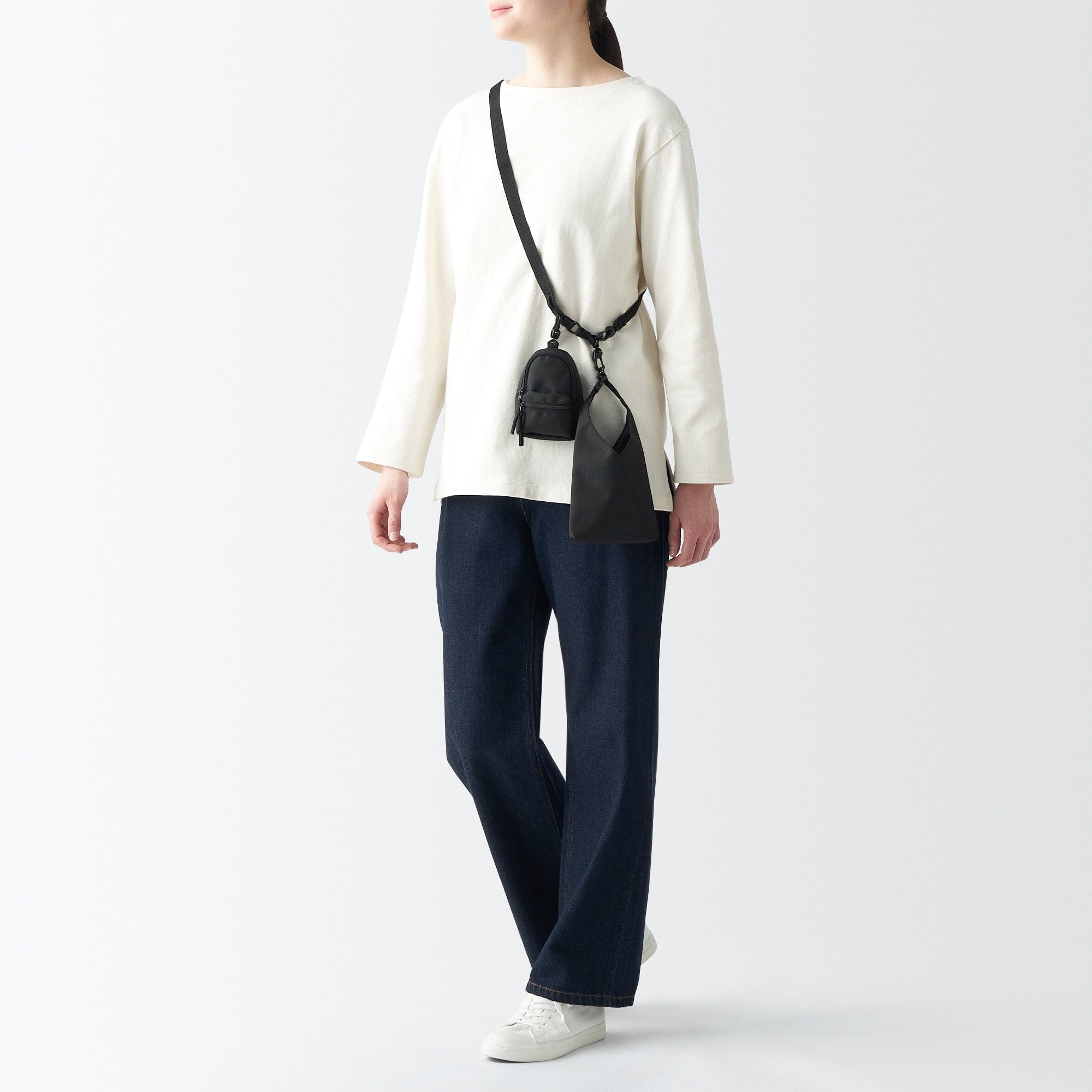 A mini version of a classic MUJI item. This adorable mini canvas backpack can be hung on a shoulder strap to store small items and accessories. It can also be used as a cute decoration or gift bag.