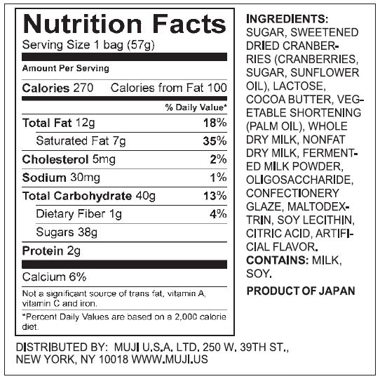 A thin layer of yogurt chocolate is used to bring out the sweet and sour taste of the dried cranberries.